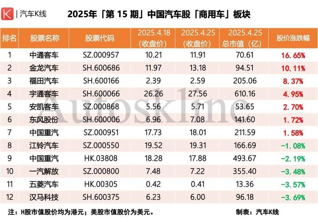 与此同时,恰逢上海车展火热进行的汽车股也扬眉吐气。《汽车K线》统计在册的98只汽车股,超7成实现上涨,平均股价由下跌转为大涨4.09%,总市值回升至8.62万亿元。