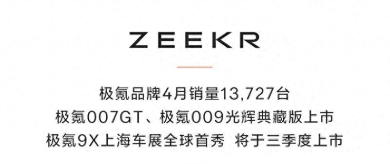 据了解,除极氪001外,目前极氪品牌销量较好的是极氪7X。数据显示,今年第一季度销量1.47万辆,占总销量35.6%。即便如此,今年一季度平均月销不足5000辆,距离月销万辆的预期仍有较大差距。
