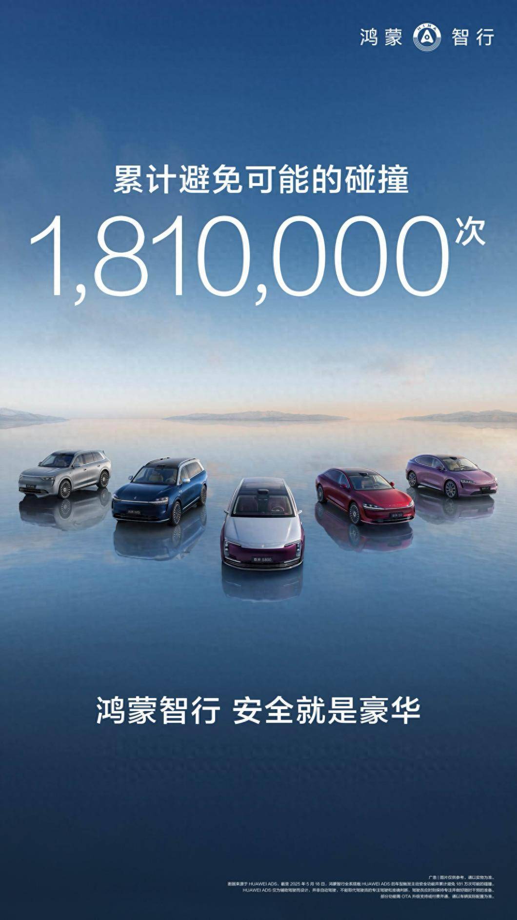 不断在主动安全上做加法,说得直白一点,就是鸿蒙智行在尽自己最大的努力,规避道路上各种碰撞事故可能性。截止目前,鸿蒙智行车型已经累计避免超181万次可能的碰撞,践行安全是最大的豪华。