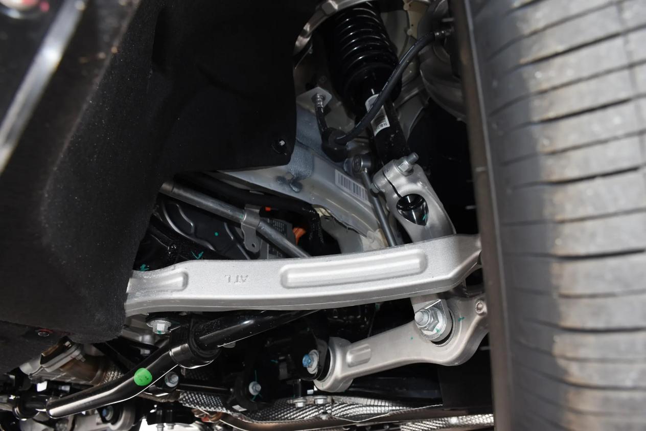 底盘悬架的结构方面还是比较高级的,采用前双叉臂+后五连杆独立悬架,这一组合常见于豪华车型,像同价位的比亚迪宋PLUS DM-i等竞品多采用前麦弗逊+后四连杆结构。零跑C11的双叉臂前悬通过上下两个A臂控制车轮运动轨迹,大幅提升侧向支撑力,在快速过弯时能有效抑制侧倾;后五连杆给了更多的可调空间。通过多维度调节,兼顾滤震细腻度与操控精准性。实际驾驶中,这套悬架展现出不错的适应性,高速巡航底盘较为紧致,车尾的跟随性还不错,城市里轧过井盖和减速带时,悬架的压缩回弹到位,车身有一些晃动,但整体可控,滤震表现符合价位。