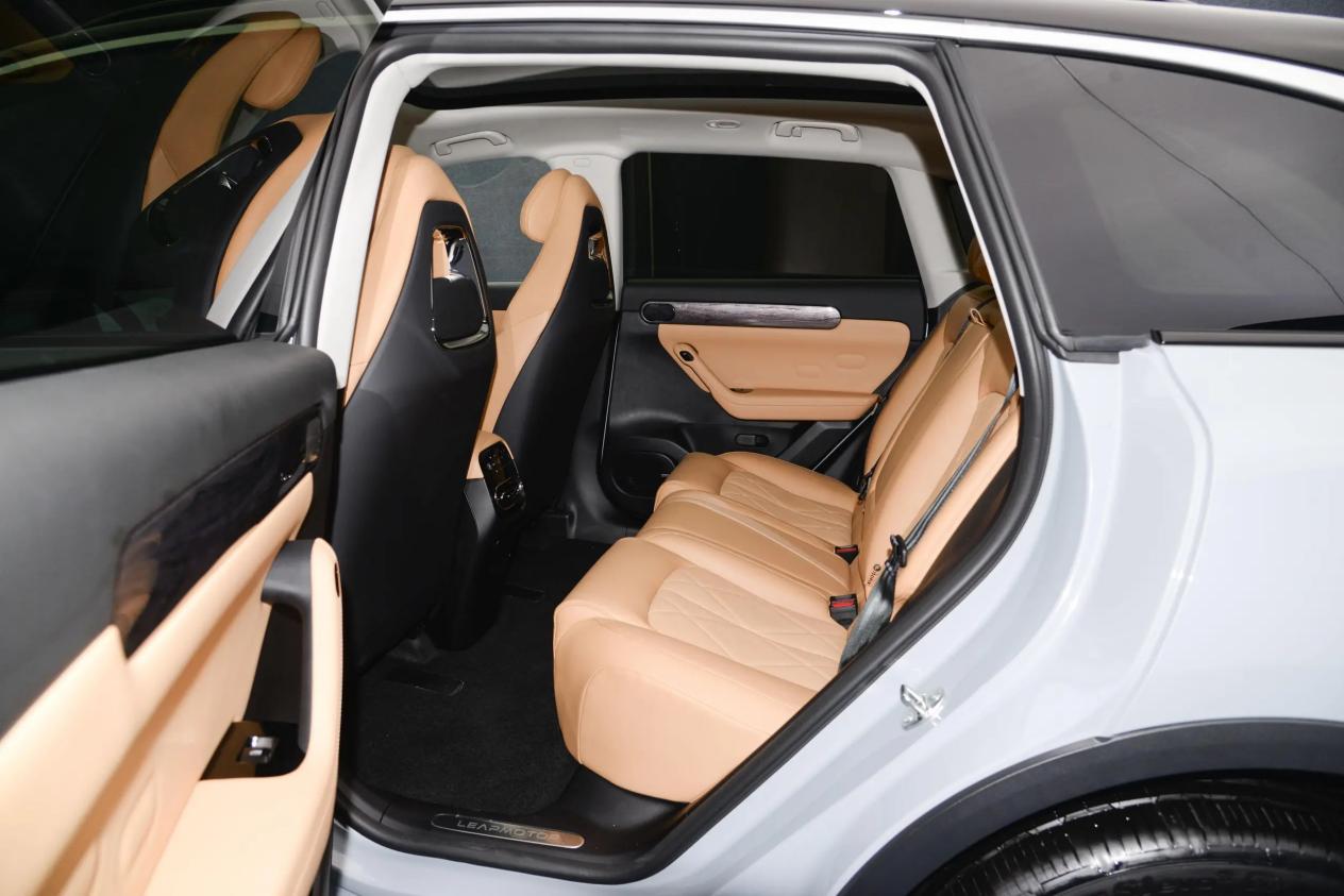 内饰在设计上中规中矩,T型中控对称式设计,中控台面是软性材质包覆,中间搭配皮革和仿实木饰板,内饰配色有“玄黑+驼绒棕”以及“岩灰+雾紫”2种双拼颜色,基于“四叶草中央集成式电子电气架构”打造,车辆将座舱、智驾、车身、动力四域整合,实现高算力、低延迟协同控制。车内配备10.25英寸液晶仪表、14.6英寸2.5K中控屏和10.25英寸副驾娱乐屏,三屏联动又各司其职,符合当下的流行趋势,车机芯片采用的是高通骁龙8295P芯片,是目前的头部梯队芯片,算力是行业主流8155芯片的7倍,语音助手支持60秒连续对话和方言识别,唤醒速度仅0.8秒,车机搭载Leapmotor OS系统,界面类似PAD,屏幕的触控操作体验流畅,有类似旗舰手机的操控感受。