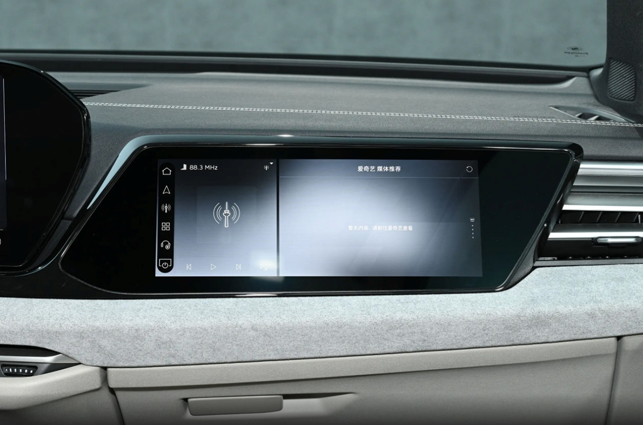 内饰配备三块大屏,分别是11.9英寸液晶屏、14.5英寸中控屏、10.9英寸副驾屏,新车还提供13.1英寸W-HUD,可以实现四屏联动,向新势力看齐。全景天幕也很有意思,分布了102颗RGB LED,可以实现30种颜色调节,能与车内氛围灯、多种场景模式进行联动,氛围感营造的很到位。