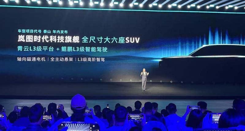 实际上,除岚图FREE+外,岚图计划年内还将推出一款基于天元智架打造的全新车型——“泰山”(目前代号)。从现有信息来看,泰山定位全尺寸大型SUV,采用2+2+2大六座布局,将基于青云L3级平台打造,搭载鲲鹏L3级智能驾驶、轴向磁通电机、全主动悬架等尖端技术,面向高端市场。
