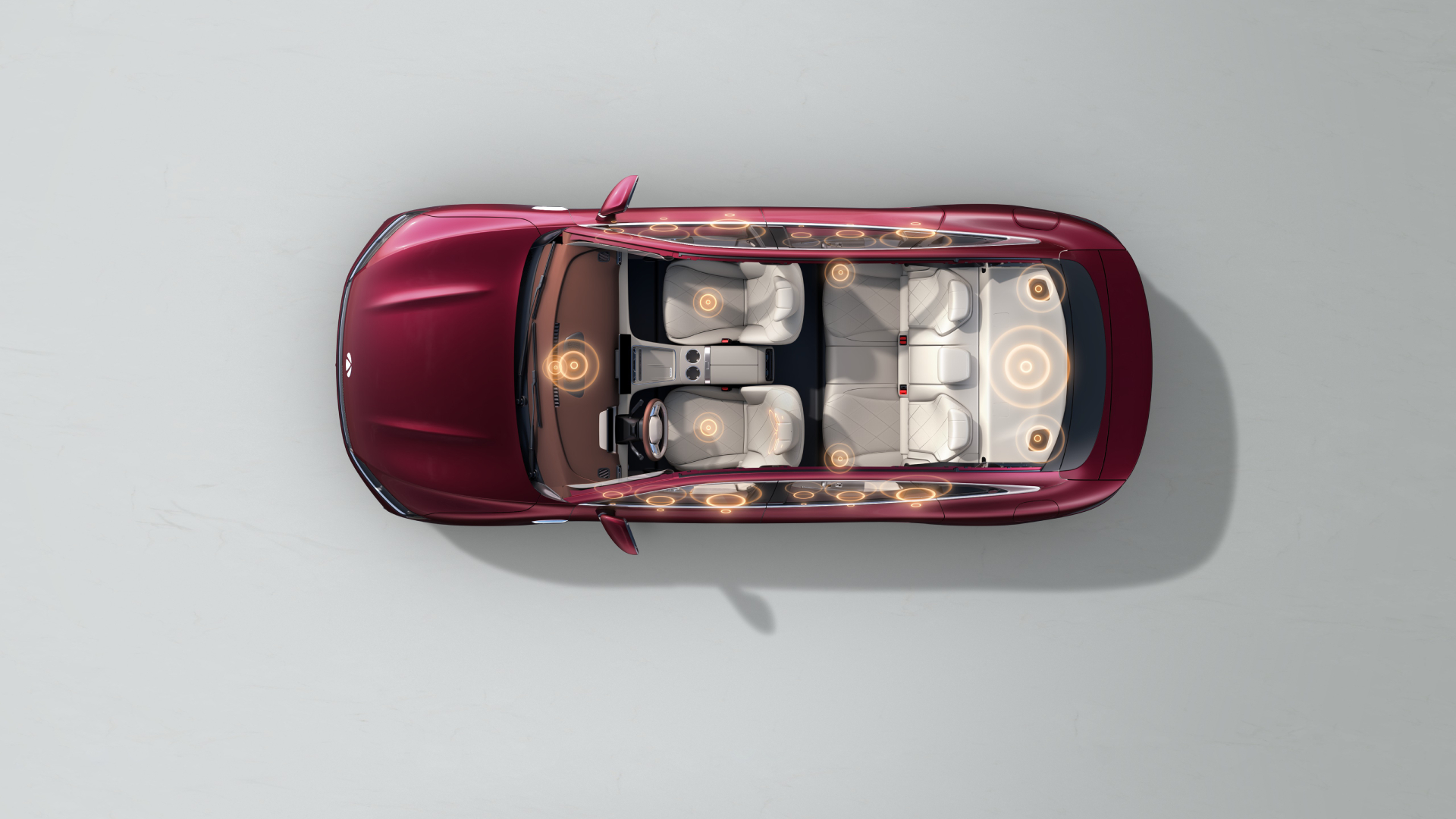音响更是个大惊喜。这套叫 "伯牙之音" 的系统,塞了 23 个扬声器,布置成 7.1.4 的全景声格局,听交响乐时感觉指挥家就站在中控台中间。最狠的是那个 1080W 的功放,堪比专业录音棚设备,功率比普通车的音响大 200%。