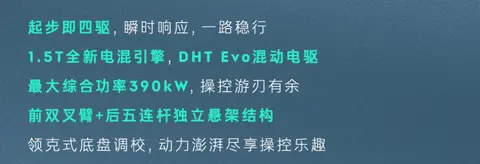 动力方面,领克10 EM-P搭载1.5T发动机+前后双电机所组成的混动系统,其中发动机最大功率120kW,同时P1+P3+P4电机所组成的四驱系统综合功率可达390kW、扭矩则高达755N·m。