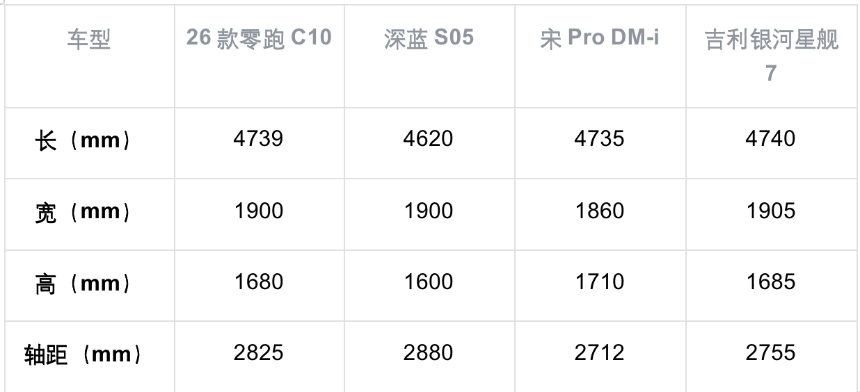 12-16万元预算,想选择一款国产新能源SUV,在市场中确实有不少选择,2026款零跑C10、深蓝S05(参数|询价)、吉利银河星舰7、比亚迪宋Pro(参数|询价) DM-i都是不错的选择,这些车型都主打的是“家用”属性。