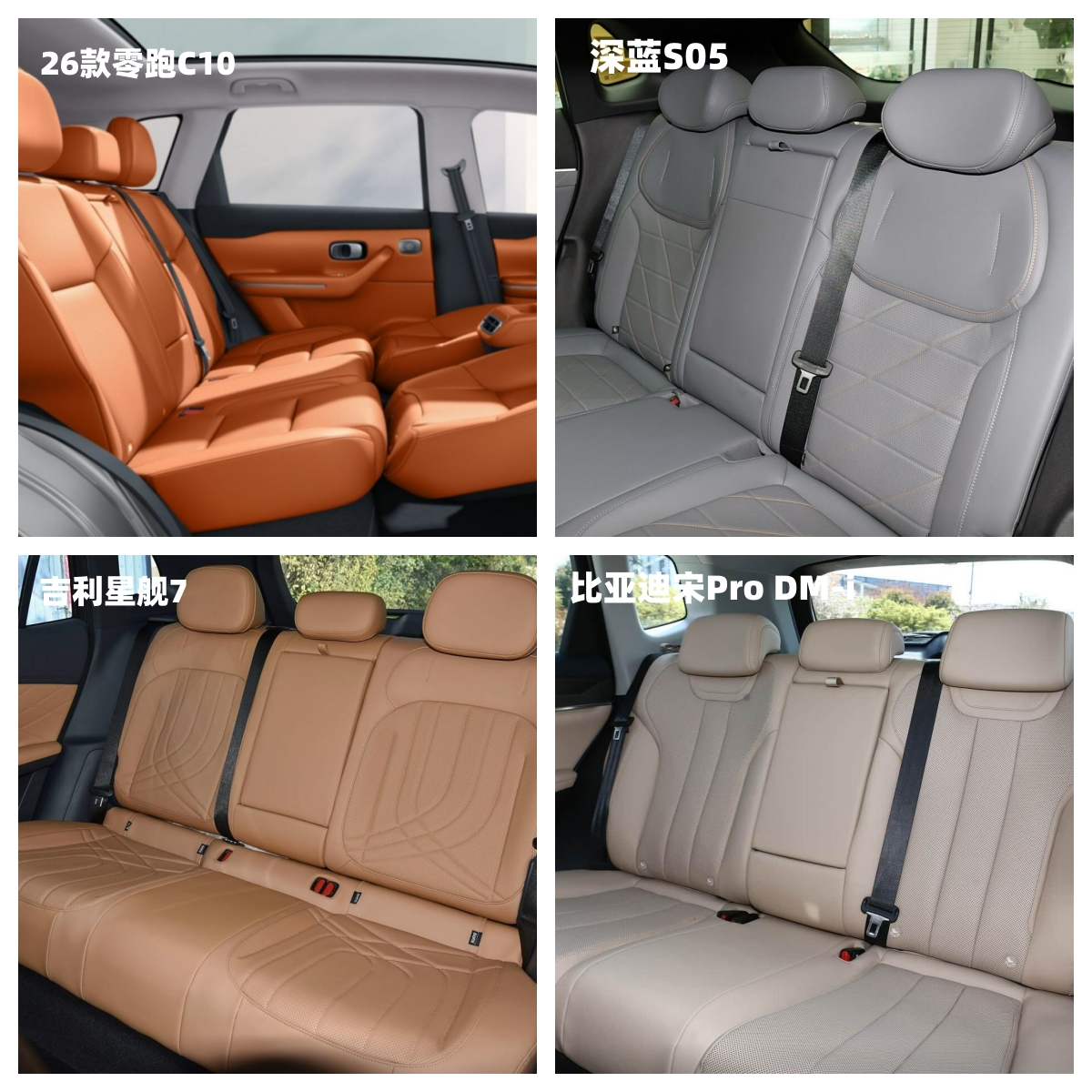 底盘方面,零跑C10、深蓝S05、比亚迪宋Pro DM-i都采用的是前麦弗逊和后五连杆的独立悬架,吉利银河星舰7采用的是前麦弗逊和后四连杆的悬架,显然星舰7的底盘用料缺乏一些升级。而零跑C10、深蓝S05、比亚迪宋Pro DM-i虽然底盘一致,但是在调校方面有区别,零跑C10采用了CTC 2.0电池车身一体化技术,同时提升了前后俯仰抑制、上下耸动等关键性数据,日常起步晃动更少、侧倾俯仰抑制也更好,更有高级感,而且新车全系采用的是通风盘制动,百公里时速刹停不足35.3米,驾控表现更好。
