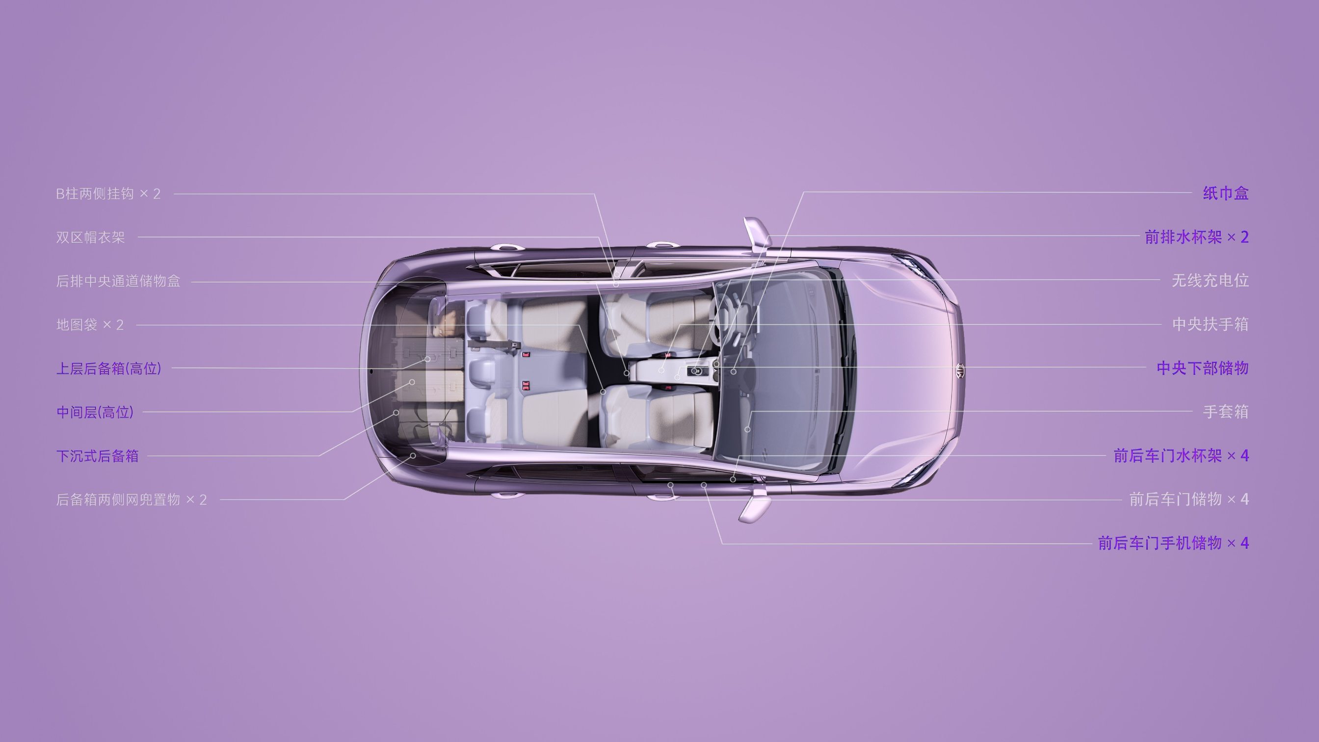 二排座椅放倒秒变露营空间,503mm同级最长坐垫+纯平脚踏,双层镀银前挡+UV-IR侧窗+物理遮阳帘,紫外线阻隔率达99.9%,14项主动安全配置(含后向自动制动、开门预警)、AI后视镜补盲(OTA升级)、柔光美妆镜、方向盘加热等,贴心覆盖女性及家庭出行场景。