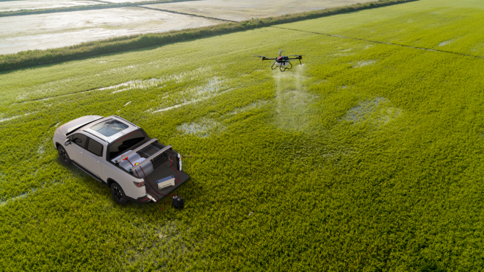 说到无人机飞手,这车简直就是为他们量身定制的。传统作业方式用燃油发电机给无人机充电,每度电成本3.8元,用雷达RD6的外放电功能只要0.5元,一年能省好几万。而且行驶中就能充电,不用专门停下来等,效率提升不少。后斗空间足够放两架植保无人机,再加上70L的前备箱,工具设备都能装下。