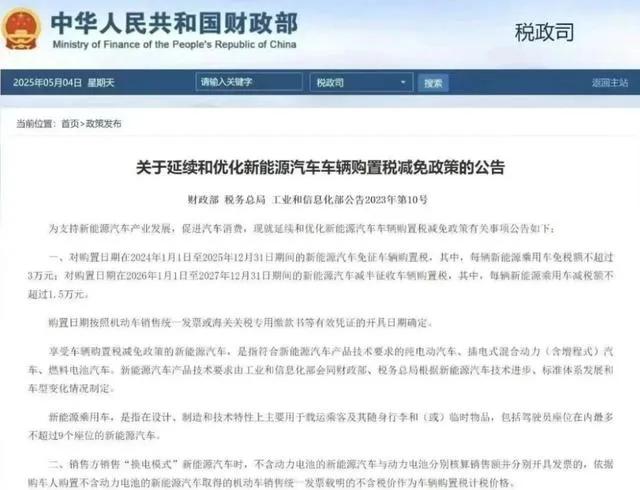 同样的,如果是今年不急着用车,想明年看看新款的车型,毕竟现在的新能源车半年都上新车,一个比一个卷,那明年2026年,也就是2026年1月1日至2027年12月31日,是要缴纳正常税的一半,免税额度是1.5万块人民币。