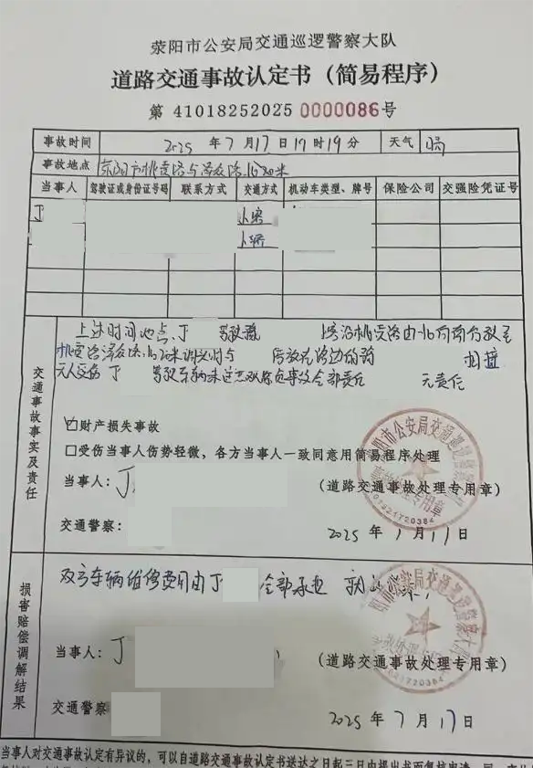 2025年7月17日,丁女士在郑州中原大荣汽车销售有限公司的星途汽车4S店里试驾,其驾驶的车辆为星途瑶光(参数|询价)C-DM;试驾过程中在遇到十字路口时,坐在副驾驶位的试驾专员告诉丁女士在十字路口掉头。但是由于当时路边停了车,掉头过程剐蹭到了路边的车辆。