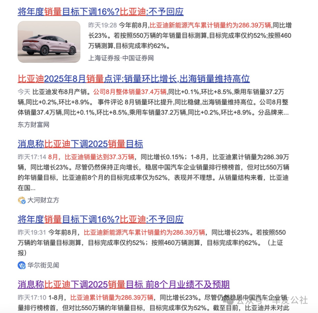 9月4日,据路透社报道,两名知情人士称,比亚迪已将今年的销量目标下调至多16%,从年初制定的550万辆降至460万辆,下调了90万辆。一时间,各大媒体争相进行转发,但值得注意的是,这一消息并不是由官方渠道爆出的。