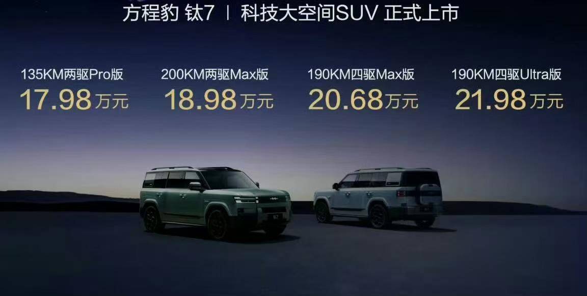 17.98万元起!插电式混合动力!方程豹钛7正式上市!