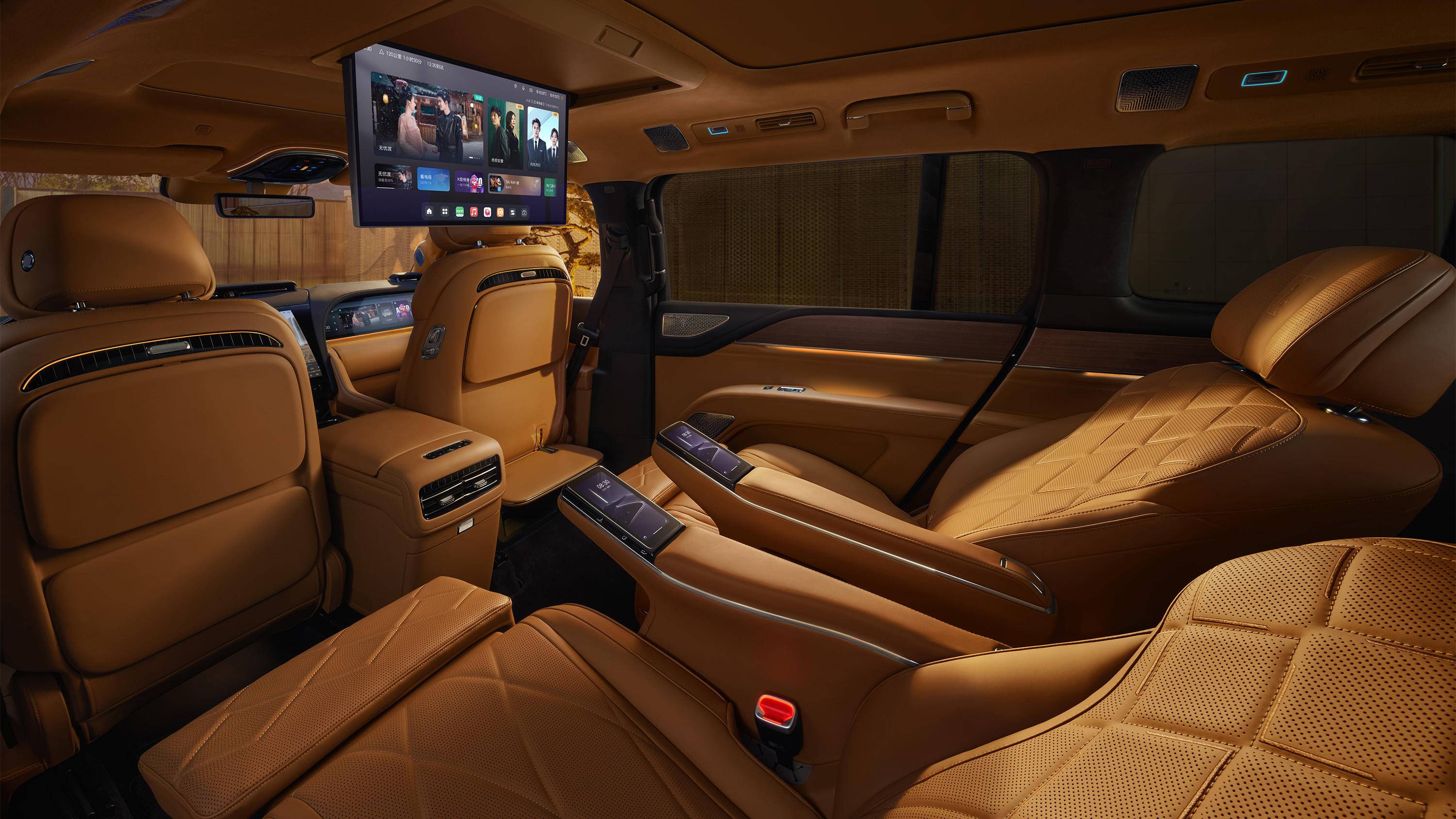 仰望U8L拥有鼎级空间表现,采用2+2+2灵活布局。二排双零重力座椅支持150°大躺角,配备脚托与18点按摩系统,消除疲惫,轻松上路。二排创新推出三种专属模式:云卧观影模式打造移动私人影院,一键舒躺模式提供安心休憩空间,全平躺椅模式变身双人沙发床。