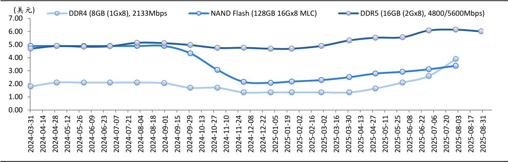 资料来源:DRAMexchange,万得,交银国际 * DDR4和NAND基于合约平均价,DDR5基于现货平均价