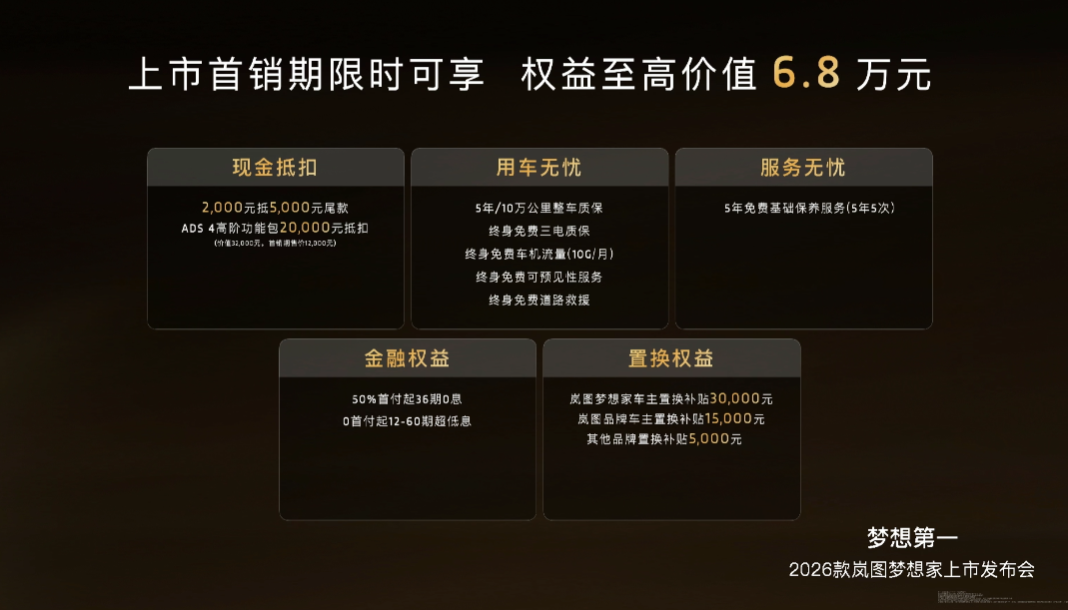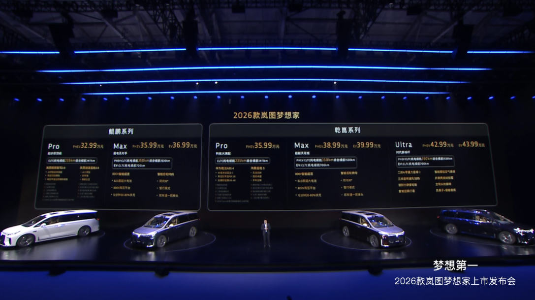 尊贵豪华更长续航,2026款岚图梦想家上市,32.99万元起售
