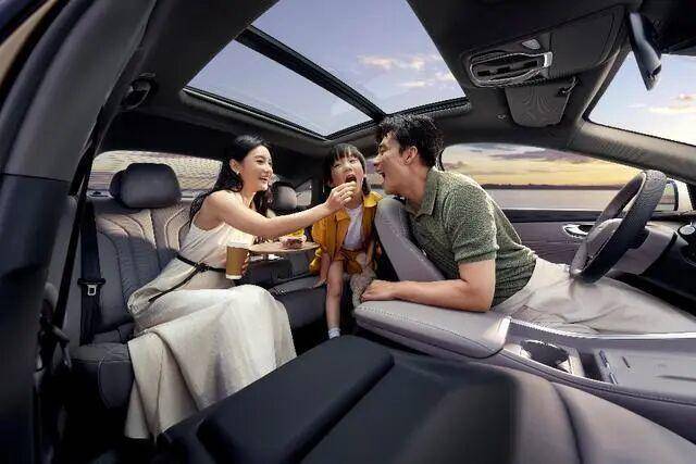 除了续航,荣威M7 DMH在空间和舒适性方面也下足了功夫。其车身尺寸为4940/1890/1510mm,轴距为2820mm,定位中大型轿车,提供了较为宽敞的后排乘坐空间。车内配备了号称“乳胶感慕斯舒压座椅”,采用Ultra Touch亲肤表层材质和Surflex®高慢回弹海绵填充,旨在提升乘坐舒适性。全车31处储物空间和527L的后备箱容积,也体现了对家庭用户实用需求的考量。