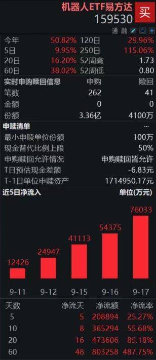 机器人ETF易方达(159530)盘中净申购近3亿份