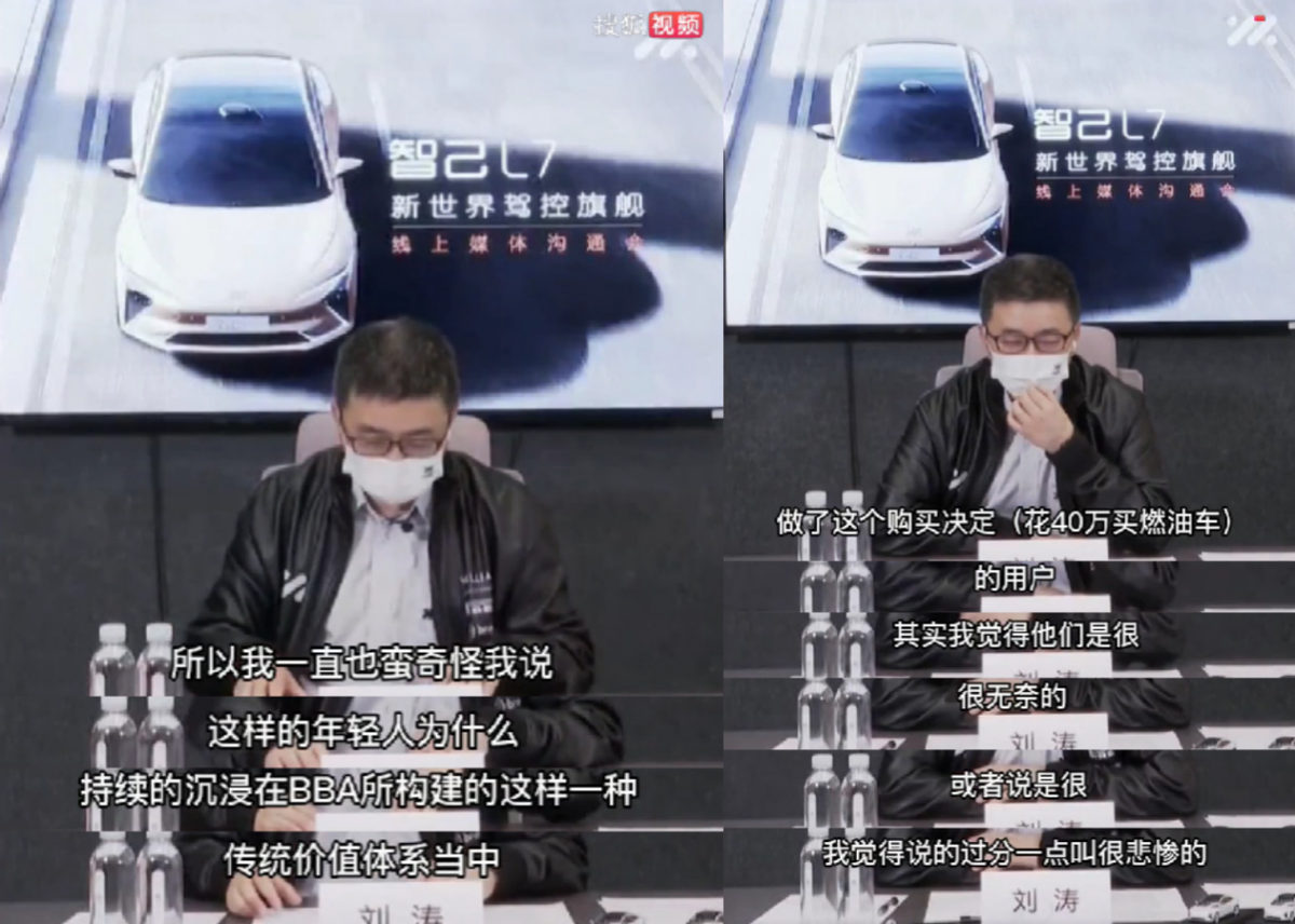 要说目前为止营销翻车次数最多的新能源品牌,恐怕非智己汽车莫属吧。早期刘涛针对燃油车,拉踩特斯拉、宣扬加班美德的各种逆天言论;炒作违章行车、车内包饺子等花样视频刷存在感;与饿了么联名合作,又被网友群嘲成为网络热梗。