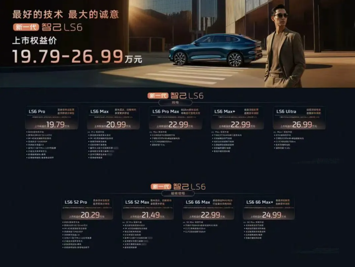 智己LS6目前提供了多达9个配置版本,涵盖纯电和增程两种动力系统。在各家厂商都宣传“标配即顶配”、“标配即满配”、“入门即顶配”的2025年,智己的这一波操作的确有点逆潮流。