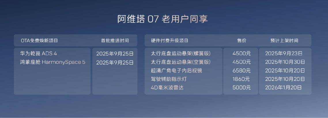 与此同时,针对本次阿维塔07 2026款的上市,阿维塔还推出了重磅购车礼遇。2025年10月31日(含)前大定用户可享7大限时权益:首任车主终身三电质保、10000元定金膨胀礼遇、价值10000元的英国之宝·卓越之声音响系统免费升级、价值10000元宁德时代5C骁遥超级增·混电池(52.01kWh)限时升级礼遇、20000元ADS高阶功能包等额抵扣券、价值4000元的辅助驾驶无忧服务权益、金融购车限时政策。