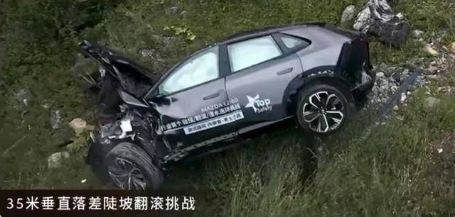 接下来的翻滚测试更刺激,车辆从35米垂直落差的陡坡翻滚,这是很多新能源车型不敢直面的挑战,但EZ-60用实力说话,积极参与,即使翻滚过程中,车身多次与岩石碰撞,座椅约束系统和气囊系统都能响应及时,电池包也没有出现任何损伤,顺利通关。