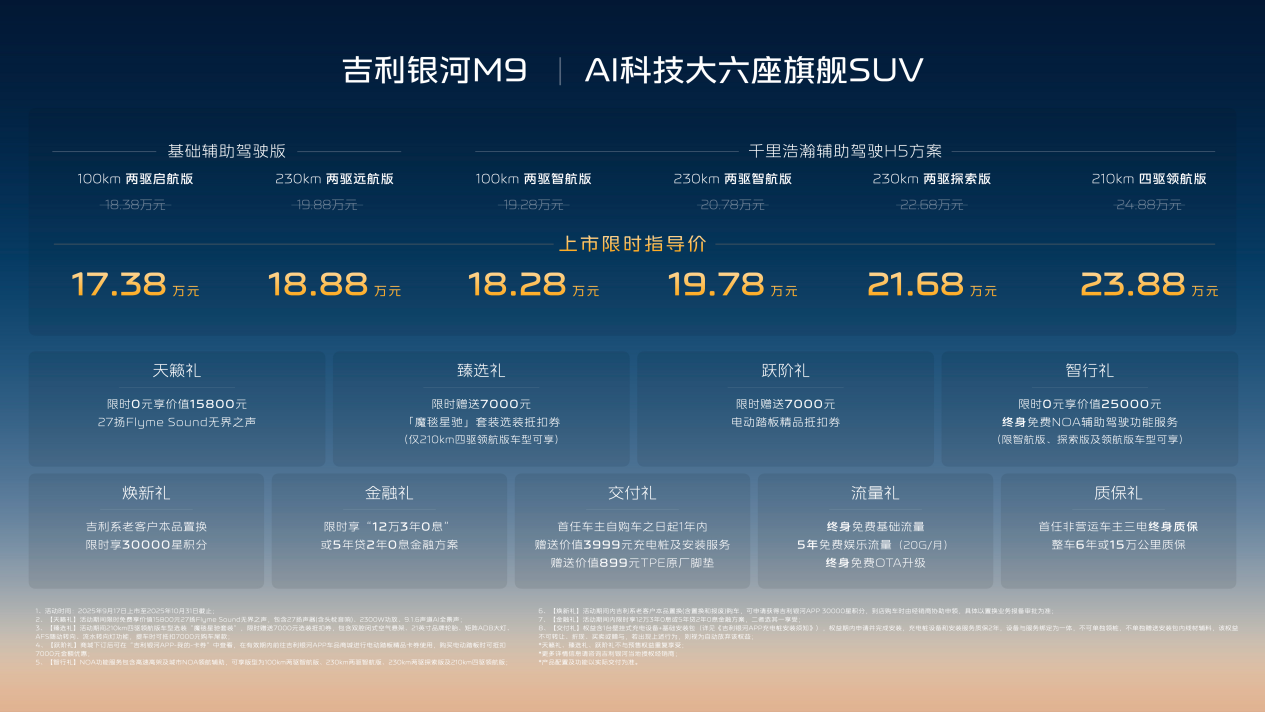 AI体系造AI汽车!限时17.38万起,吉利银河M9上市,开启AI出行新时代
