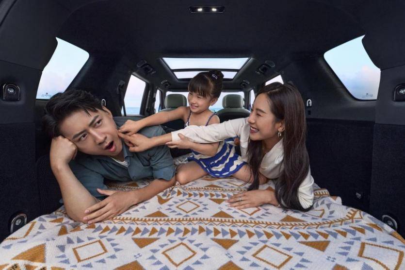 猛士M817的“超享魔术空间”,更是将“家”的舒适与“行”的自由完美融合。828L超大后备厢容积,最大可拓展至2112L,能轻松装下婴儿车、旅行用品及大型户外露营装备,全面满足全家出行要求;“以后出门旅游,全家行李和露营装备都能轻松装下了”赵芸蕾说。“五座可变三张床”的设计,使车内最大可组成2.1米舒享大床,秒变“移动卧室”;Nappa真皮全功能座椅、丹拿18扬声器音响,为用户打造豪华舒适的出行体验。