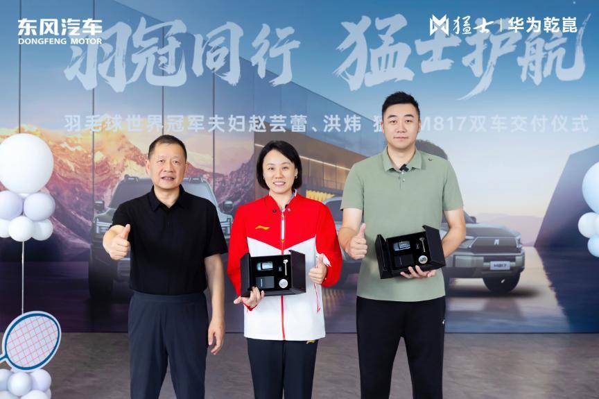 9月21日,“羽冠同行 猛士护航”猛士M817交付仪式在东风猛士科技智慧园区举行。湖北籍羽毛球世界冠军赵芸蕾、洪炜夫妻,从东风汽车集团有限公司董事长、党委书记杨青先生手中接过两辆猛士M817车钥匙,双双加入猛士M817车主大家庭。这对冠军夫妻也正式成为“猛士M817冠军推荐官”,未来将与猛士M817一起共同探索未知,解锁生活的无限可能。
