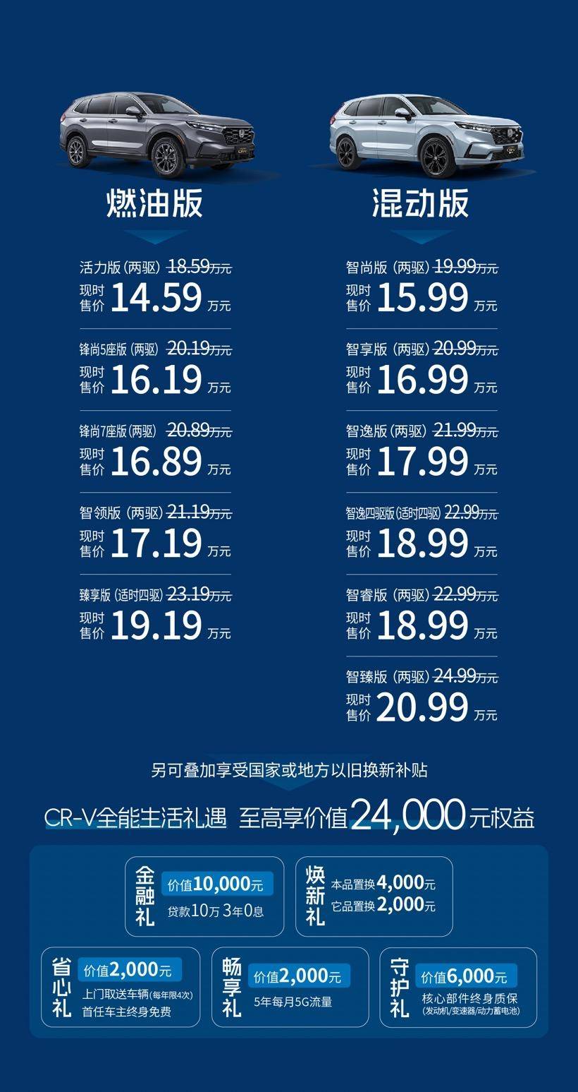 CR-V全球30年荣耀款上市,智能科技全面升级,限时售价14.59万起