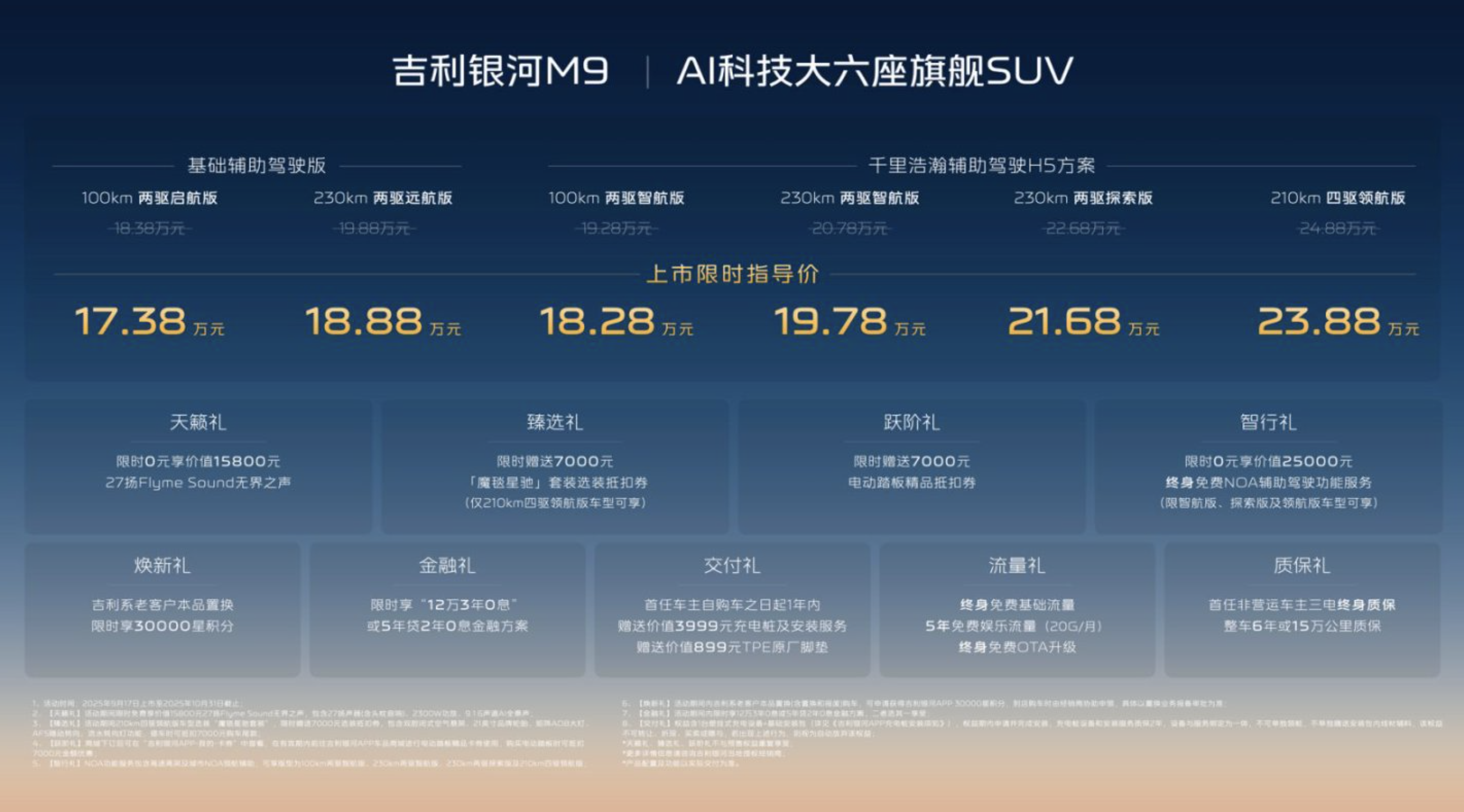 6座中大型SUV“这张桌子”也被掀:吉利银河M9 限时17.38万元起售