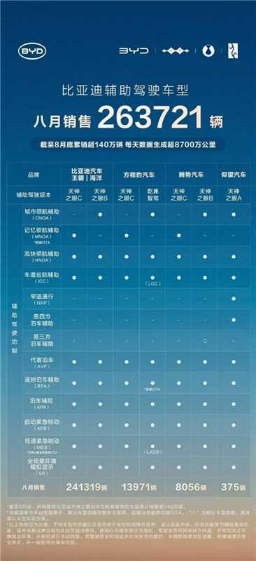 比亚迪1-8月销量286万居榜首,天神之眼累计销量140万辆