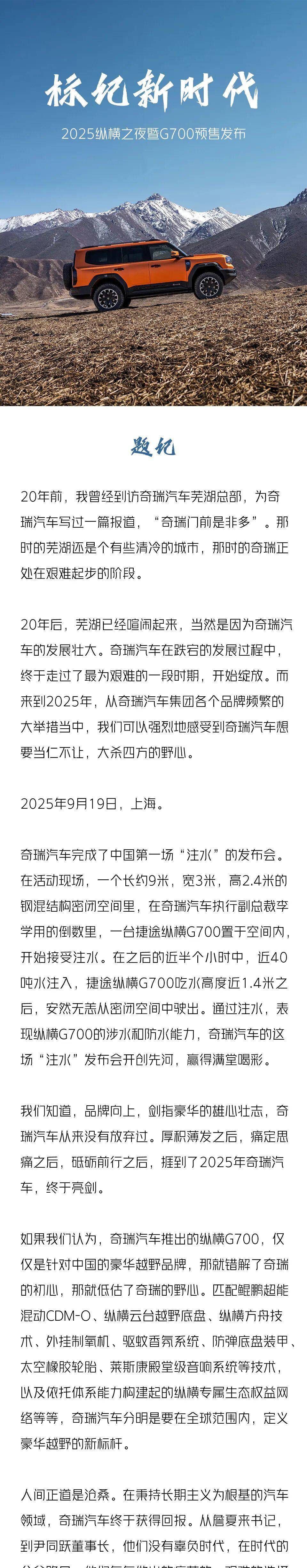 中国第一场“注水”发布会 奇瑞捷途纵横G700霸气外露
