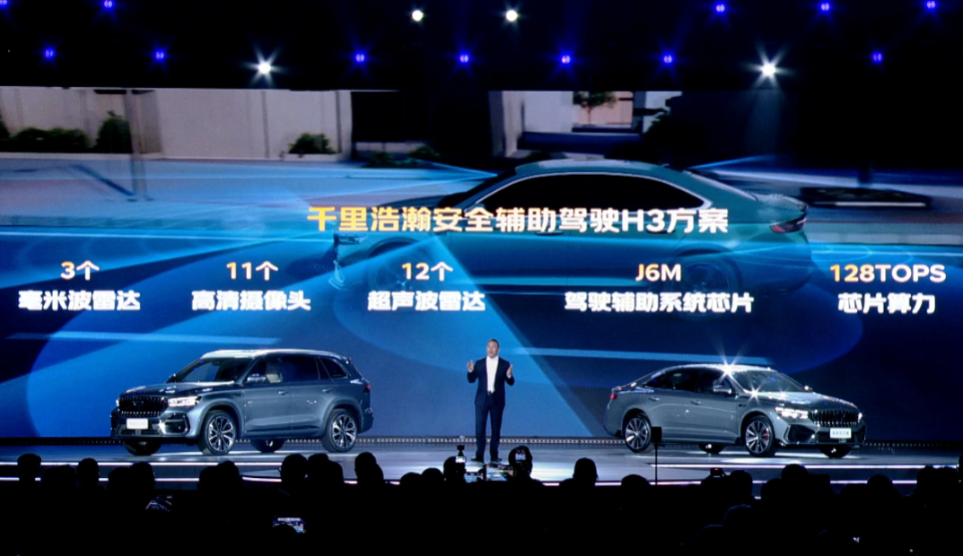 辅助驾驶方面,东方曜系列首搭千里浩瀚H3辅助驾驶方案,配备11个摄像头、3个毫米波雷达和12个超声波雷达,搭载地平线J6M芯片,算力为128TOPS,具备高速NOA和34项主动安全功能。