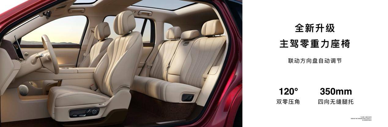 内饰采用对称式布局设计,配备16.1英寸3K悬浮中控屏搭配26英寸WHUD,更有68英寸AR-HUD[9],行车信息一目了然。副驾升级10.25英寸娱乐屏,并新增17.3英寸后排娱乐屏[10],新增组队出行与开门守卫功能[11],全家出行途中共享欢乐时光。