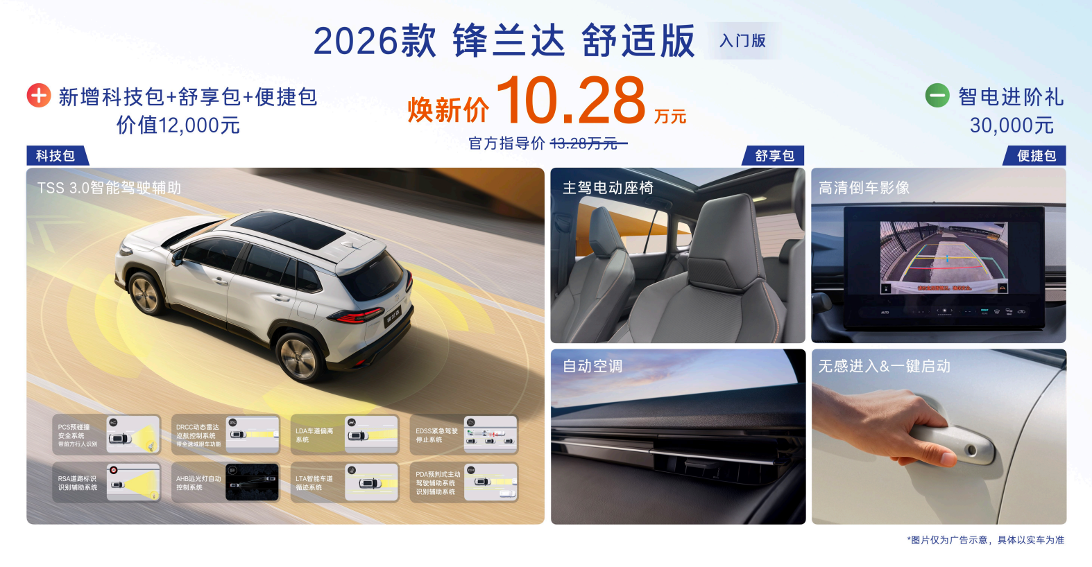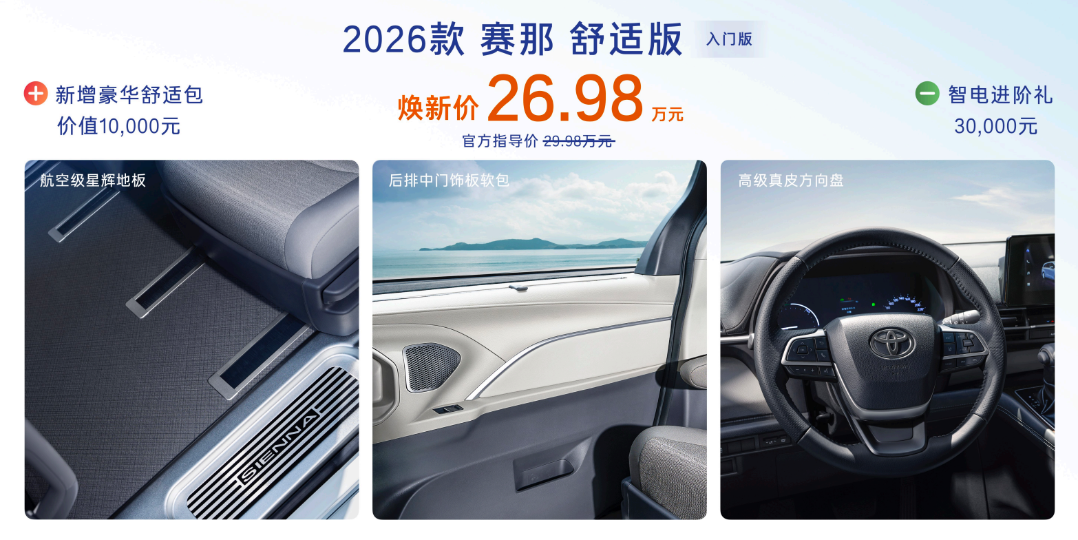 广汽丰田2026款全球车升级 入门版配置大幅提升
