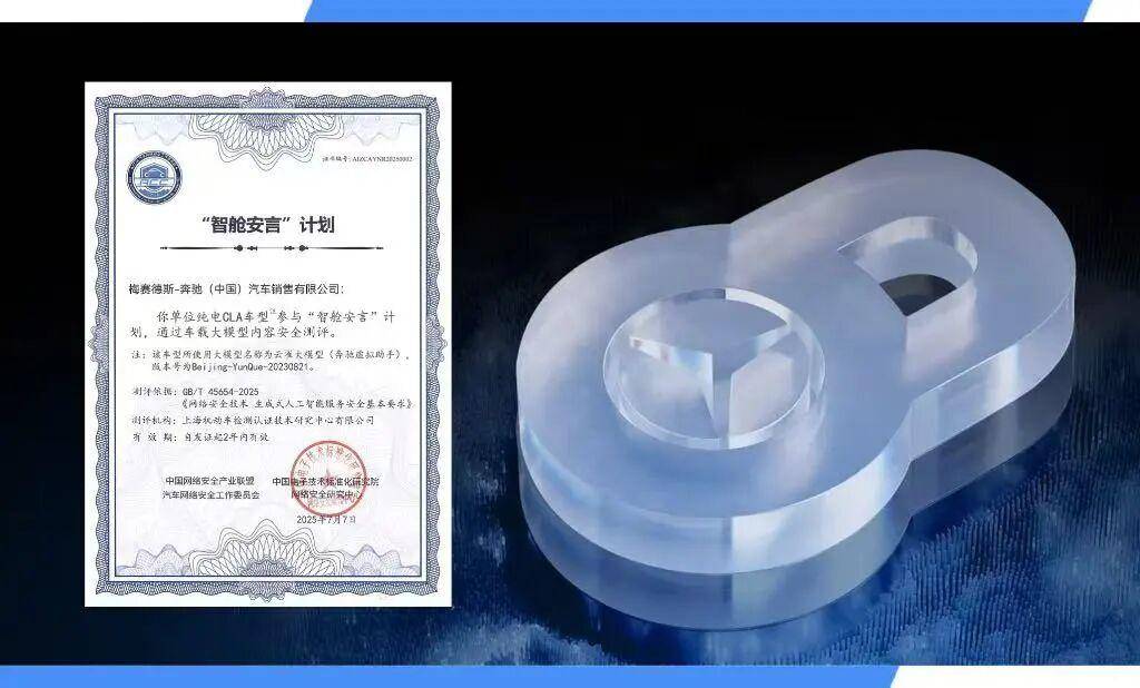 在智能化研发领域,梅赛德斯-奔驰坚守严谨的“工程师精神”,严守“安全为先”的原则,无论是在智能座舱还是辅助驾驶领域,全方位保护用户数据隐私,确保出行既安全又安心。今年7月,奔驰成为首个获得车载大模型安全认证的国际车企。