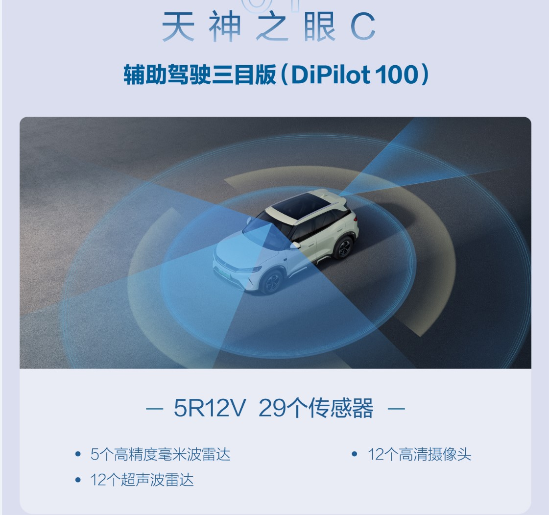 相比之下,元UP凭借拥有29枚传感器的天神之眼C-高阶智驾三目版 (DiPilot 100),支持高快领航HNOA以及全场景智能泊车。但是有一点不得不说,元UP的智能驾驶辅助功能主要聚焦于高速场景,城市道路主要为基础辅助功能。