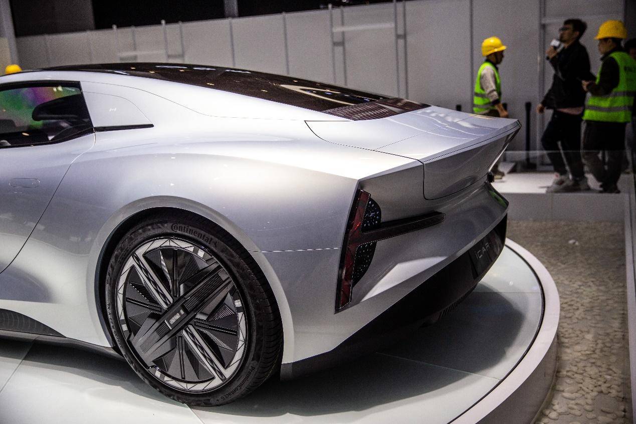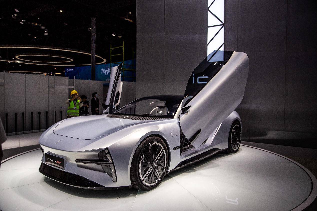 iCAR-GT定位概念车,其采用无极光弧设计理念,在现场的灯光下,配合变色车漆整体辨识度较高。具体来看,该车采用封闭式前格栅设计,并在车头加入了大量的空气动力学套件。例如前包围采用了加长的下唇,使其空气动力学效应进一步提升。
