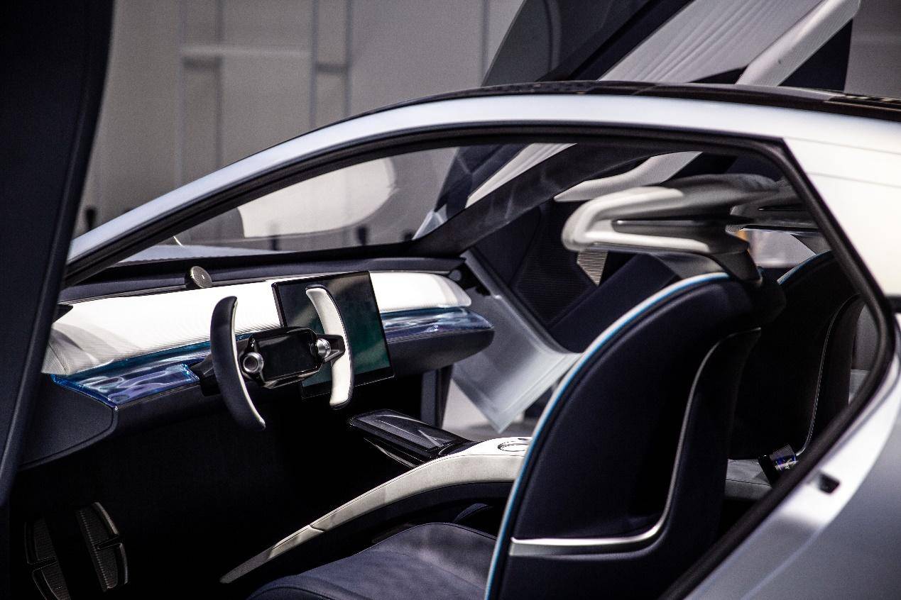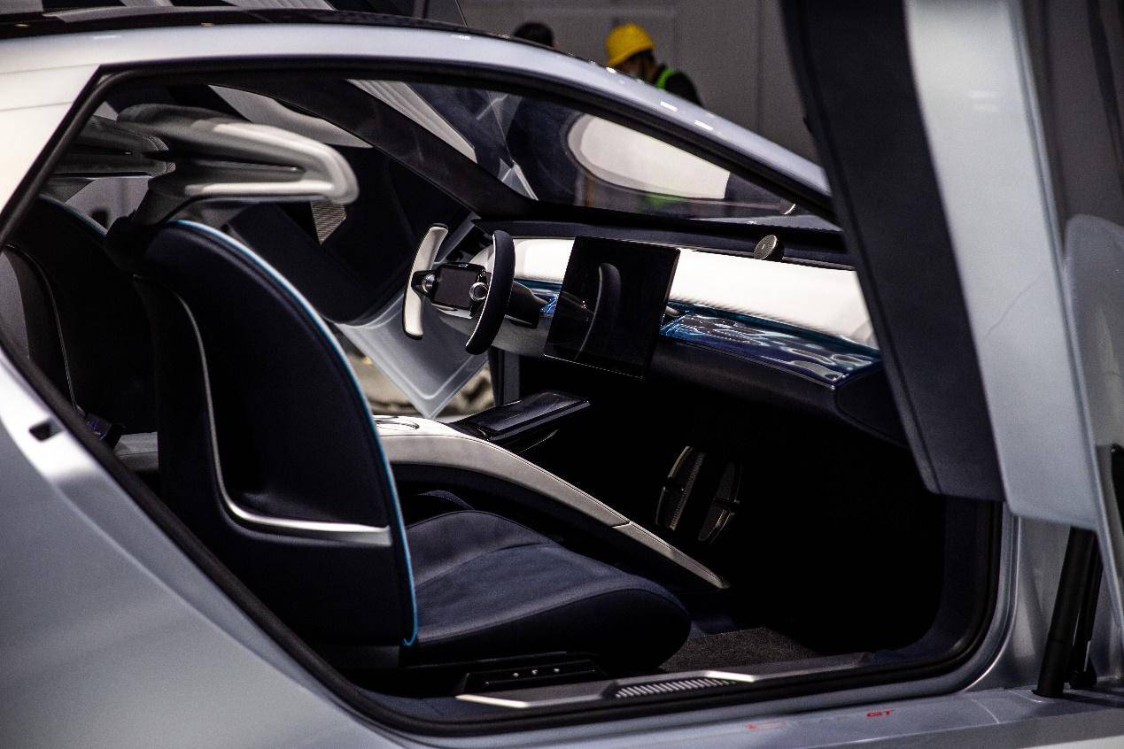 内饰方面,设计师的整体概念相当前卫。例如括号形方向盘、大尺寸悬浮式中控屏以及手扶箱处两个圆形触摸键来完成换挡的操作方式,让这款车看上去更具科技感。同时,iCAR-GT拥有一个弧度极大的天穹设计,从车头处一直延伸至车尾,优化车内视觉空间。