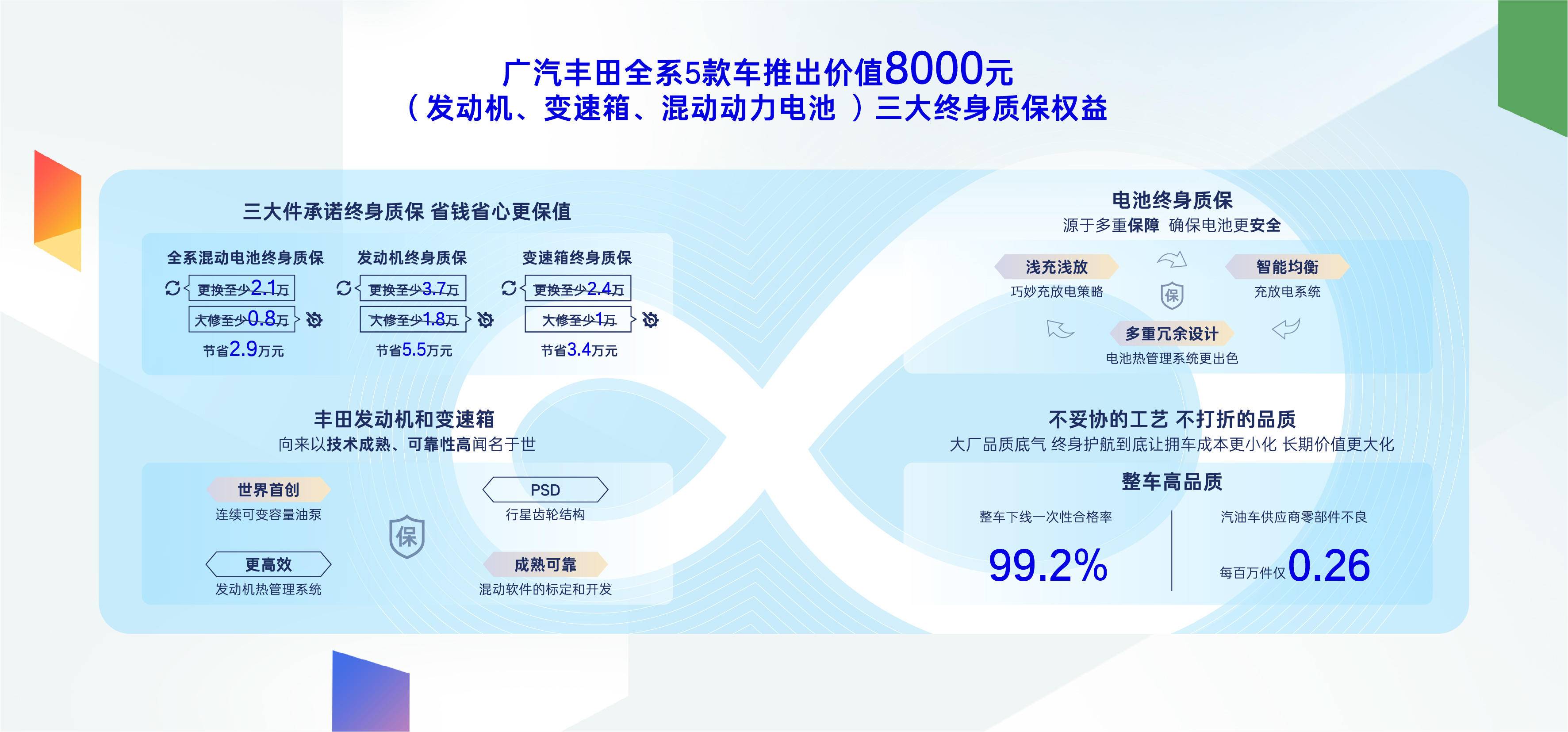 至于“三大件终身质保”、“零自燃承诺”,这是丰田“可靠性”形象的一种延续和强化。在强调智能和电感的时代,广汽丰田在用自己的方式,维持着全球车系在中国市场的生命力。