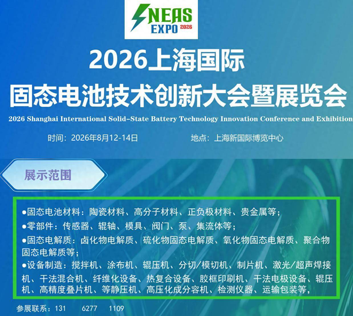 NEAS-2026上海国际固态电池技术创新大会暨展览会