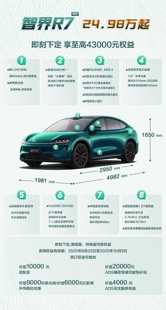 智界汽车官方发起的“智界直接一点挑战赛”还在持续,新款智界R7试驾车也已经全面进店,感兴趣的可以前往解锁新体验。对于有购买智能汽车的消费者来说,新款智界R7/S7上市22天,大定突破25000台,新款智界R7可享43000元权益,智界新S7可享53000元权益,显然提供了不错的购车参考。