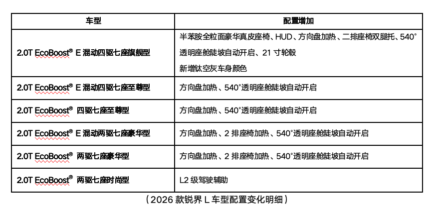 2026款锐界L升级上市!二排头等舱更豪华,指导价22.98万起