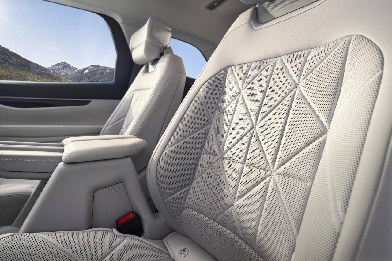 内部空间上,福特锐界L是同级唯一具备2-2-3和2-3-2座椅布局可选的大7座SUV。2-2-3布局下,二排座椅可使用电动调节,更有三种座椅一键调节模式,其中“一键舒躺模式”可自动调节至“座椅向后41度、腿托向上50度”的近零重力模式,带来媲美头等舱的乘坐体验。二排座椅还有同级少有的加热、通风功能,很好地照顾到了老人、孩子的出行体验。2排通道宽至200mm,比一些MPV还宽,成年人可以轻松走进第三排。