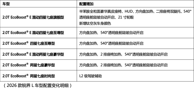 2026款福特锐界L上市22.98万起,二排头等舱豪华升级,主力车型加配不加价