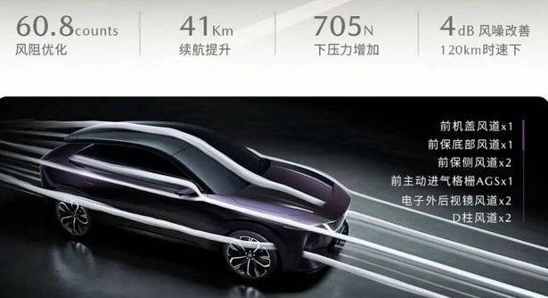 通过“破风、稳风、化风”三段式系统化风策略,这些风道协同工作,共同为EZ-60带来了60.8 counts的风阻优化,直接转化为约41公里的续航提升。同时,它们还在高速行驶时为车辆提供显著的下压力,增强了操控稳定性,并有效降低了风噪,实现了续航、操控与静谧性的共赢。
