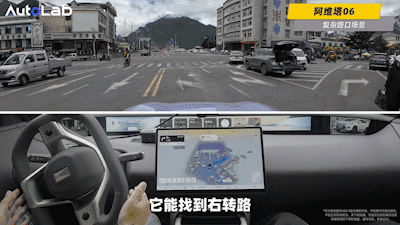 此外,在林芝市区,阿维塔06还驶过了一段非常复杂的右转路口。
