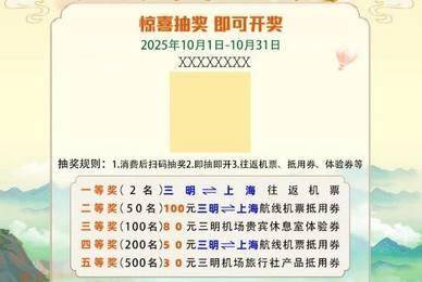 *重要提醒:中奖后需7日内联系福建三明机场旅行社有限公司登记,机票需提前10天兑换出票;所有奖品有效期至2025年12月31日,机票预订需实名,信息需与乘机人一致哦~