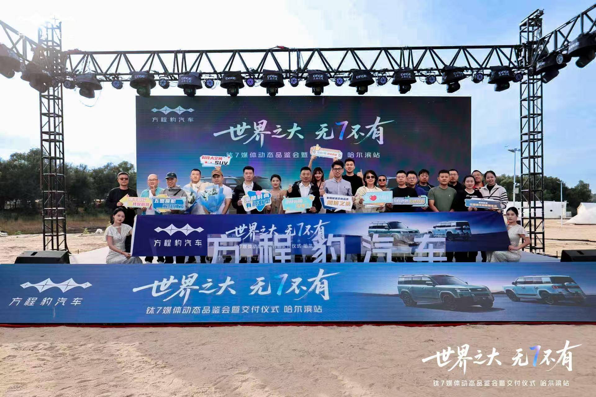 9月27号哈尔滨可热闹了!方程豹家的钛7(参数|询价)在这儿办了场品鉴会,还同步搞了交付仪式,本地主流媒体和刚提车的车主都凑一块儿了。说真的,现场看完这车,我算明白为啥大家都围着它转——这哪是辆普通家用SUV啊,简直是把"全家舒服"和"科技好玩"焊在车身上了!